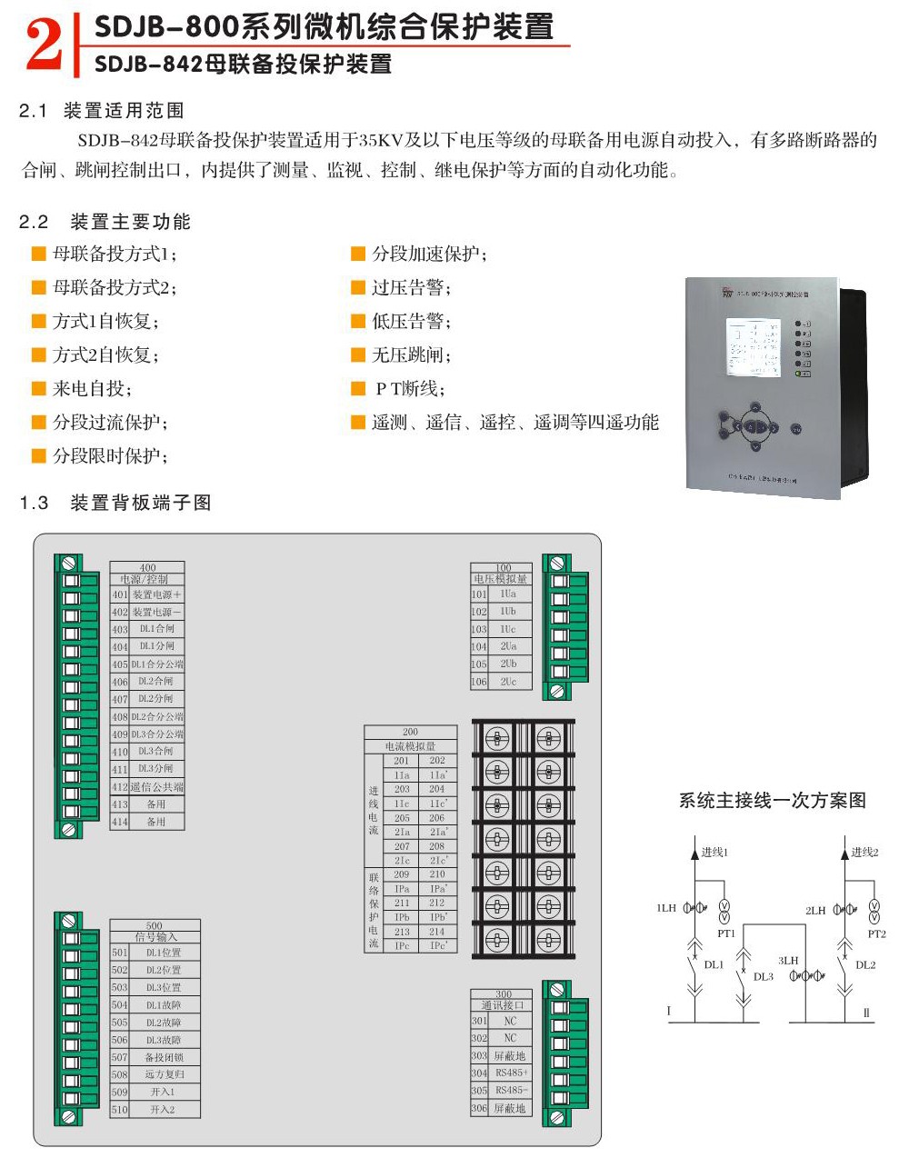 SDJB-842母聯(lián)備投保護(hù)裝置