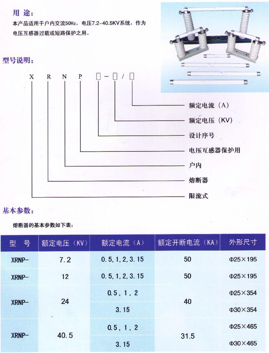 XRNP-7.2-40.5KV-電壓互感器保護用高壓限流熔斷器